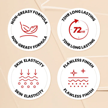 Formulated for extended wear, it provides up to 72 hours of consistent, fade-resistant coverage that stays fresh throughout the day. Powered by Hyaluronic Acid, it ensures breathable, lightweight comfort without caking, making it ideal even for sensitive and acne-prone skin.